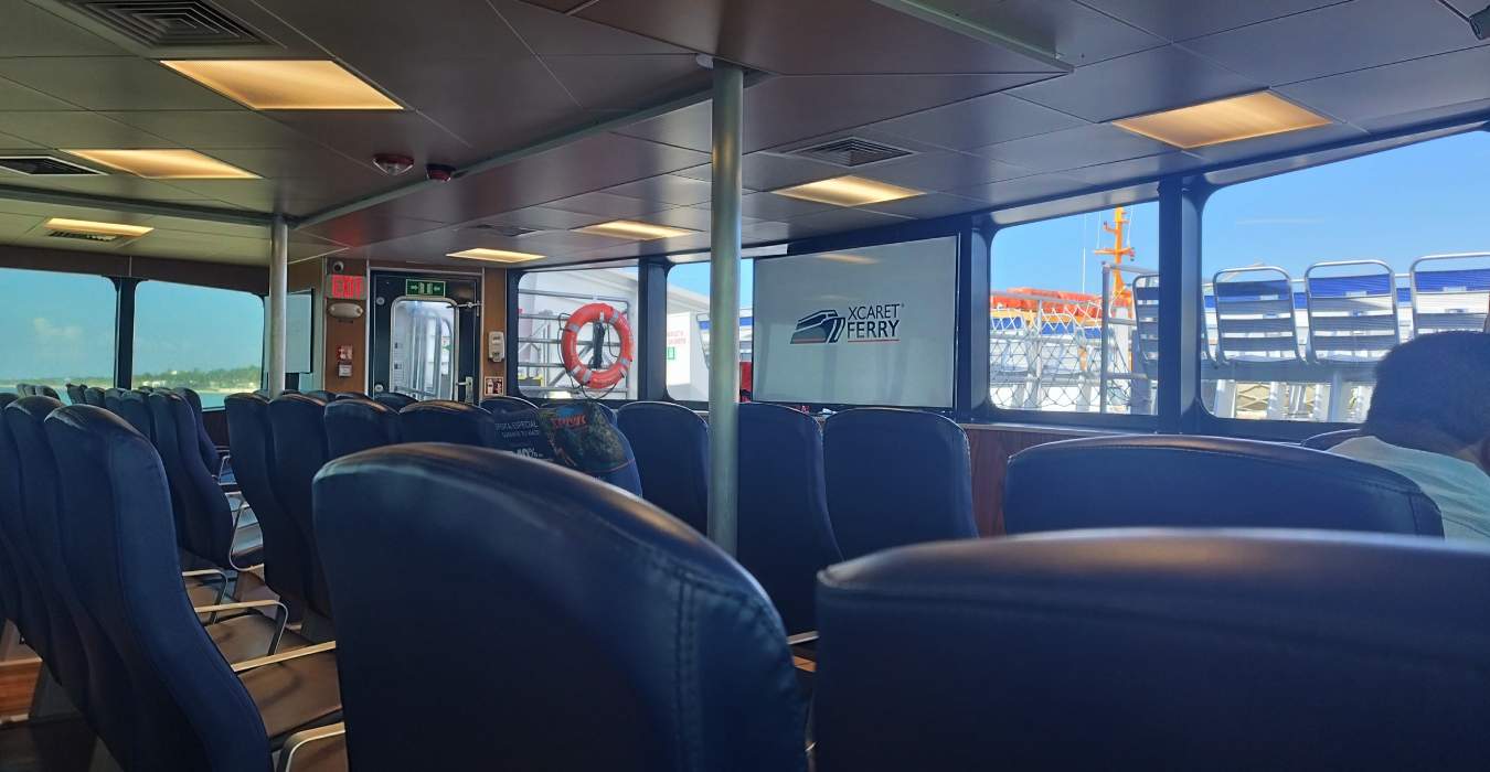 Desde Playa del Carmen cogeremos un ferry directo hasta la isla de Cozumel. Existen varias compañías que proveen el servicio y todas tienen oficina en el muelle desde donde salen dichos ferrys. En la actualidad estas compañías son: Winjet, Xcaret Sailing y Ultramar. Xcaret fue nuestra opción, básicamente por el horario en que llegamos. Entre las dos compañías tienen repartidas los horarios, unas salen a en punto y otras a y media, aunque Xcaret ha ampliado el horario a salidas desde las 6.30 de la mañana.